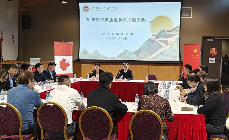 2025年1月16日,驻温哥华总领馆召开领区中资企业座谈会,杨舒总领事出席并讲话。